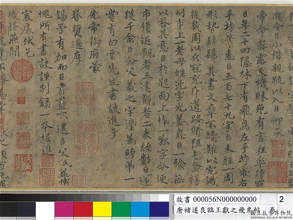 全帖的奇笔。二十四岁的王献之隐居林下时, 遇到一只飞鸟——鸟左手拿纸,右手拿笔,送给他 579 个字。 这是典型的道家"天授"神话:书法不是学的,是神赐的。 魏晋文人把"灵感"写成具体的神仙事件,这是其中最奇的一则。