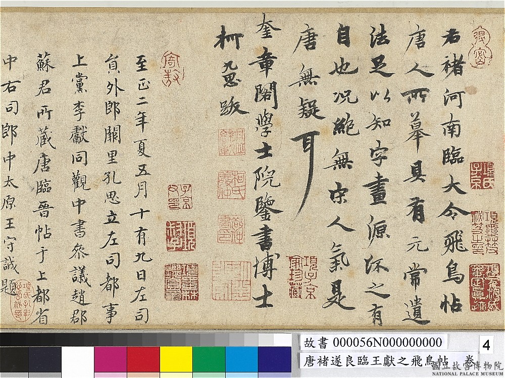 这卷是个双重疑案:一方面,王献之原帖讲的"天授书诀"故事本身就半真半假; 另一方面,"传褚遂良临"的这件纸本也历来被怀疑是后人摹临。 但即使这层层嵌套的伪托里,也保留了一些真东西—— 字里那种细瘦而挺拔的气息,确实是褚体的气息。 伪迹之所以有价值,是因为伪者本身也要在褚的笔法里完成它的伪造。